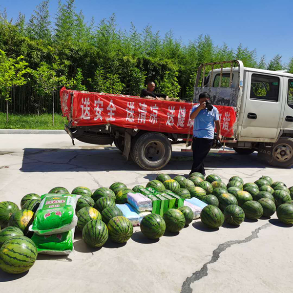 為向一線職工送關愛,送盛夏清涼,李主席一行給分公司全體員工帶來清涼又溫暖的防暑降溫用品,包括西瓜、綠豆、茶葉、毛巾等。