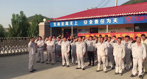 會議結束后,分公司全體員工于項目部院內列隊,組織開展了安全生產宣誓活動,一句句誓詞朗朗而出,叩響在員工們心田,提醒員工們時刻銘記著安全。