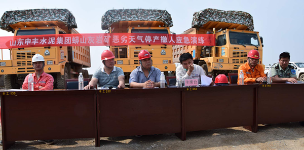 棗莊申豐水泥礦山開展惡劣天氣停產撤人應急演練