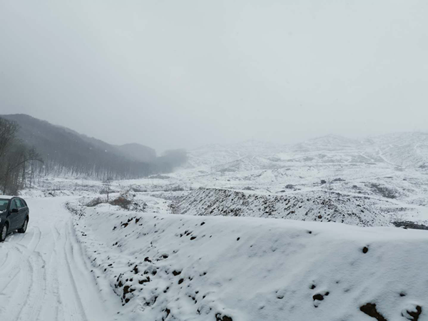 由于工期緊張,雖然積雪未融,在及時清掃的同時,做好車輛防滑及人員的防凍的保護措施并由原來的一班現已調整為兩班,并且增加了外協設備。