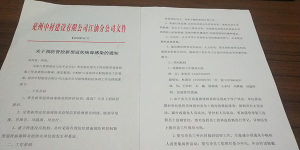 疫情就是命令,防控就是責任,為有效預防、及時控制公司新型冠狀病毒感染肺炎疫情的發生及蔓延,規范疫情應急處理工作,保護公司員工的身體健康與生命安全,最大限度地降低和消除因疫情給公司生產經營造成的負面影響,確保公司生產經營的順利進行,江油分公司結合實際情況制定了各項預案及措施:
