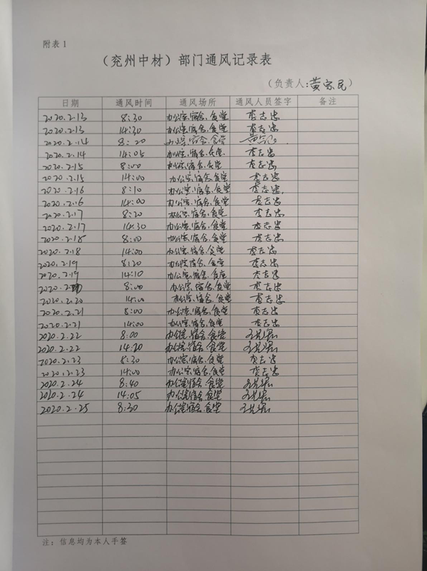 4、上班期間(除在自己宿舍外)檢查職工口罩佩戴情況,并為上班職工測量體溫,上班前和下班后各1次,并做好登記。 5、提前備好防護(hù)物資,確保清潔消毒到位,堅(jiān)持每天消毒兩次、通風(fēng)兩次,每次通風(fēng)最少30分鐘,并做好記錄。根據(jù)員工數(shù)量和防控要求,我們準(zhǔn)備足夠的防控物資(包括不少于兩周的口罩、消毒液等),確保每位員工生命健康,向職工及時(shí)發(fā)放防控物資,確保每位員工每天戴口罩上班。與他人保持安全距離,保持勤洗手,堅(jiān)持在工作前、操作后、進(jìn)食前、如廁后按照六步法嚴(yán)格洗手。摘口罩前后做好手部衛(wèi)生防護(hù),廢棄口罩放入專用垃圾桶內(nèi),每天兩次使用75%酒精或含氯消毒劑對(duì)垃圾桶進(jìn)行消毒處理,使用帶蓋垃圾桶。公司還配備了快速紅外體溫探測儀,并建立庫存和使用臺(tái)賬。