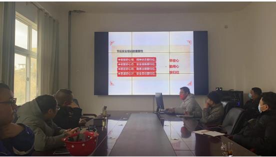 在礦山現(xiàn)場召開到崗一線員工“節(jié)后復(fù)工收心會”,趕走“節(jié)后綜合癥”,調(diào)整心態(tài),全身心回歸工作,增強(qiáng)節(jié)后安全意識。