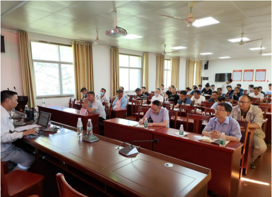 現(xiàn)場(chǎng)觀摩結(jié)束后,全體人員來到愛民鄉(xiāng)政府,分公司副經(jīng)理肖波、夏曉陽(yáng)就礦山爆破安全、邊坡控制爆破技術(shù)及現(xiàn)場(chǎng)安全施工管理等方面對(duì)全體參會(huì)人員進(jìn)行培訓(xùn)。