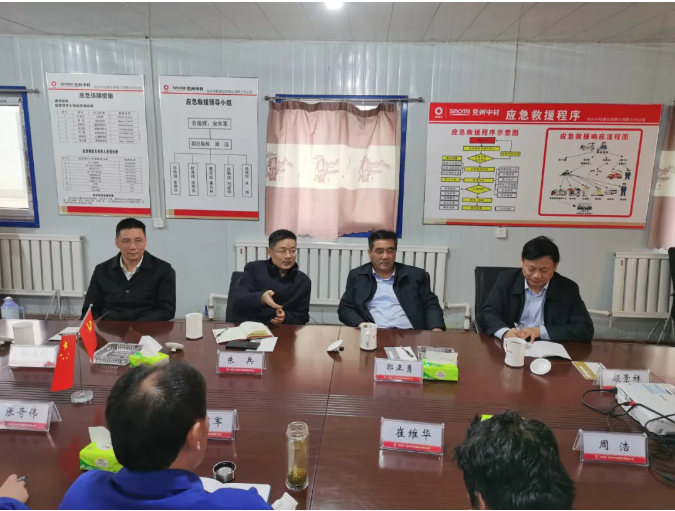 朱兵一行參觀了礦山施工現(xiàn)場,并與業(yè)主單位吉林天池鉬業(yè)領(lǐng)導親切交流。業(yè)主方對舒蘭分公司施工組織、裝備配置、人力配備表示高度認可。