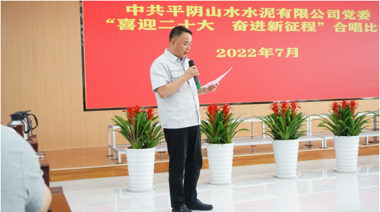 合唱比賽結(jié)束后,平陰山水總經(jīng)理丁宗新發(fā)表總結(jié)講話:今天,我們?cè)谶@里以合唱比賽的形式,共同紀(jì)念和慶祝黨的101周年華誕,我謹(jǐn)代表公司向取得優(yōu)異成績(jī)及全體參賽同志表示誠(chéng)摯的祝賀!向頂高溫冒酷暑?yuàn)^戰(zhàn)在生產(chǎn)經(jīng)營(yíng)一線的黨員、干部及職工表示親切的問候和崇高的敬意! 2022年,是黨的二十大召開之年,是“十四五”規(guī)劃全面落實(shí)、新發(fā)展格局全面布局的一年,也是集團(tuán)實(shí)施五年戰(zhàn)略發(fā)展規(guī)劃承上啟下的關(guān)鍵一年。尤其是當(dāng)前,集團(tuán)上下全面開展“百日趕超”勞動(dòng)競(jìng)賽,公司3#熟料線和商混站項(xiàng)目建設(shè)進(jìn)入攻堅(jiān)期。對(duì)我們而言,咬定全面趕超的目標(biāo)不放松、砥礪奮進(jìn)再創(chuàng)佳績(jī)是最好的選擇。 今天,我們把對(duì)偉大的黨和偉大祖國(guó)的熱愛,都融入到了紅歌的主旋律中,唱出了團(tuán)結(jié)、唱出了干勁,進(jìn)一步凝聚了精氣神,營(yíng)造出了積極向上、團(tuán)結(jié)奮進(jìn)的氛圍,也將進(jìn)一步激發(fā)廣大黨員干部積極投身到“百日趕超”、項(xiàng)目建設(shè)的工作中去,為公司高質(zhì)量發(fā)展貢獻(xiàn)力量。 最后,祝愿?jìng)ゴ蟮淖鎳?guó)更加繁榮昌盛,祝愿我們黨的明天更加燦爛輝煌! 經(jīng)過5個(gè)支代表隊(duì)10首紅歌的合唱比拼,最終確定行政銷售支部代表隊(duì)、生產(chǎn)一支部代表隊(duì)、生產(chǎn)二支部代表隊(duì)奪得比賽前三名。 |