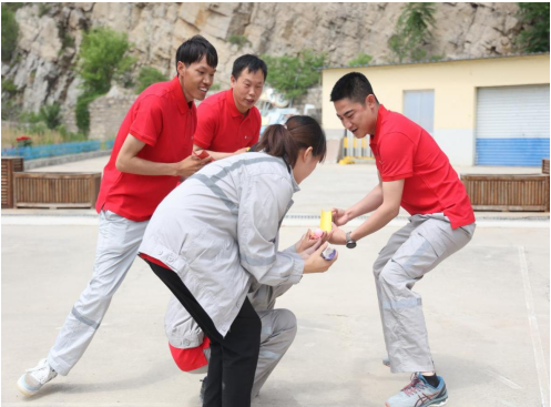 參觀施工現場結束后,共建團體開展了背靠背雙人運氣球和接力運球等生動活潑的趣味活動。賽場上,大家積極參與,氣氛非常活躍,大家賽出了水平,賽出了風格,賽出了友誼,以更加飽滿的熱情和昂揚向上的精神風貌投身到工作中去。比賽結束后,侯相欽為參賽人員發放了獎品并合影留念。